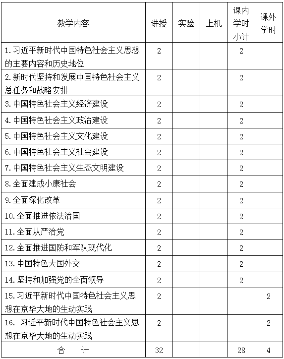 教学内容:(1)习近平新时代中国特色社会主义思想的形成条件。(2)习近平新时代中国特色社会主义思想的核心要义和主要内容。(3)习近平新时代中国特色社会主义思想的历史地位