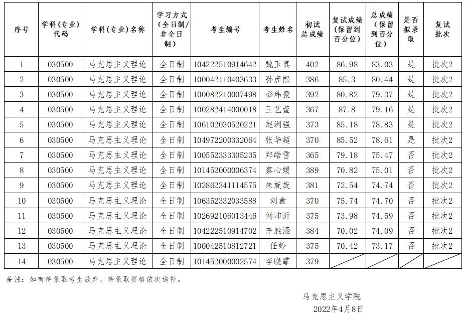谈球吧官方网站2022年硕士生招生调剂考生复试结果
