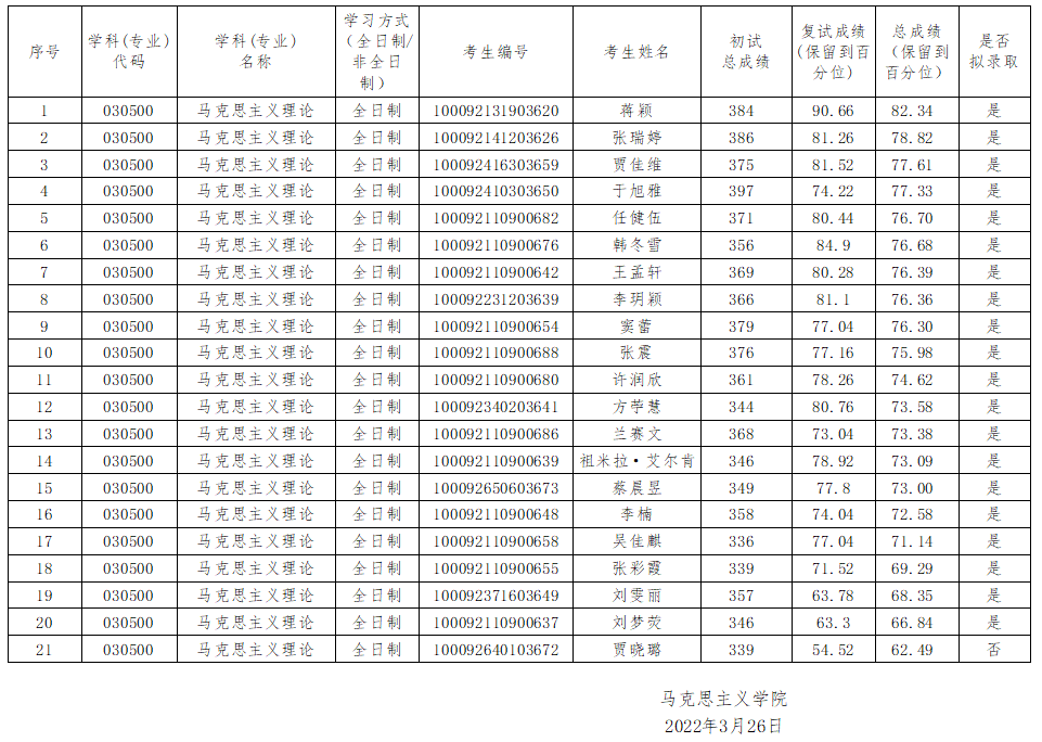 谈球吧官方网站2022年硕士生招生第一志愿考生复试结果(含拟录取名单,以一级学科/专业为单位)