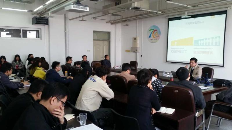 沈震老师将互联网思维归纳为用户思维、简约思维、极致思维、迭代思维、流量思维、社会化思维、大数据思维、平台思维、跨界思维九大思维类型,并把互联网思维引入到思政课的课堂之中,紧密结合当前社会实际和老员工群体的兴趣需求,通过移动互联技术的运用,为思政课教学改革提供了高效管理、全员互动、精准教学、课外拓展、数据研究等新成果,以弥补传统教学中的不足。互联网时代的新形势使得思政课改革势在必行,新媒体技术的运用为思政课的改革创新提供了新的思路和机遇。沈震老师介绍了其带领的中成智慧课团队所研发的手机端教学软件平台,利用手机实现师生在线实时互动交流,以“回归课堂”、“精准教学”、“问题导向”等教学理念,在实践中积极开展教学改革的最新尝试。