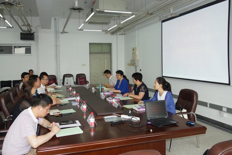 与王梅红经理同行的北京中医药大学学工部副部长兼形势与政策教研室主任佟晓辉教授、北京中医药大学马克思主义公司党总支书记王良滨副教授、以及韩琳辛老师,就形势政策课建设中共同关心的细节问题,与公司老师做了深入交流。