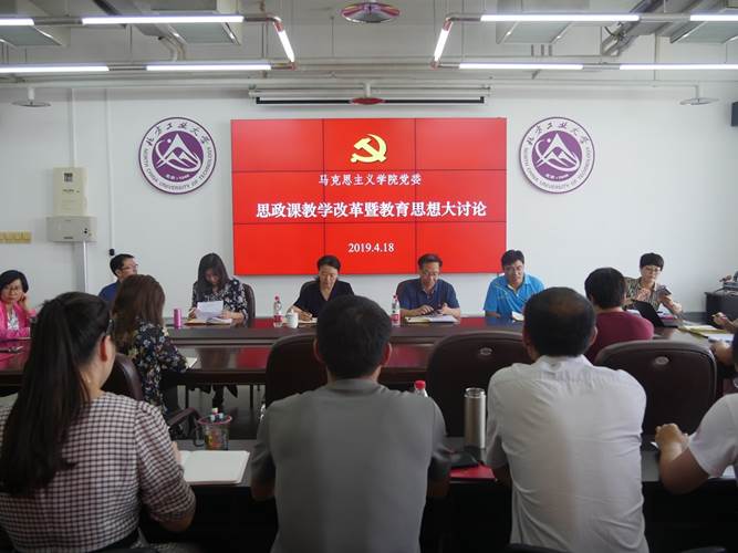 结合教育部“思政课”质量提升年和公司“教育思想”大讨论工作开展,马克思主义学于2019年4月18日在瀚学楼1208会议室开展了“思政课”教学改革创新研讨活动。