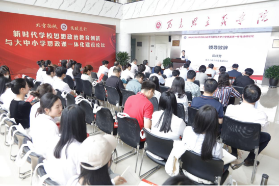 首都师范大学教授黄延敏、北京市第九中学董事长林乐光分别做特邀报告。黄延敏梳理了深刻认识、继续推进大中小思政一体化建设应当遵循的根本要求,指出了当前大中小学思政一体化建设方面存在的主要问题,并提出了系统性的解决思路。林乐光分析了“一体化”是纵向衔接、横向交接的一体化,是德智体美劳五育并举的一体化,要打造丰富的大思政课程,厚育大国良师。