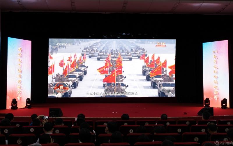 全体师生首先集体观看视频,学习习近平总书记在纪念中国人民抗日战争暨世界反法西斯战争胜利80周年大会上的重要讲话,回顾9.3阅兵的盛大场面。参与服务保障纪念大会的志愿者带队教师王子甲和员工志愿者李梦凡分别以《强国有我,贡献青春力量》和《这一刻,值得!》,分享了工作感悟,展现了师生心有大我、至诚报国的使命担当。