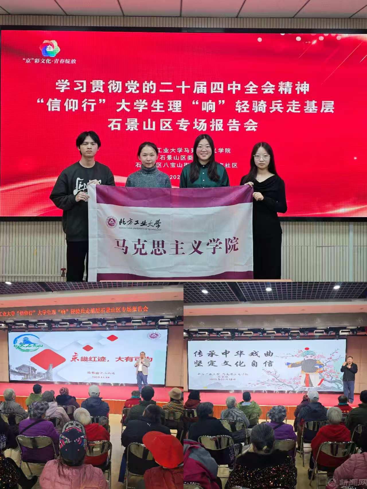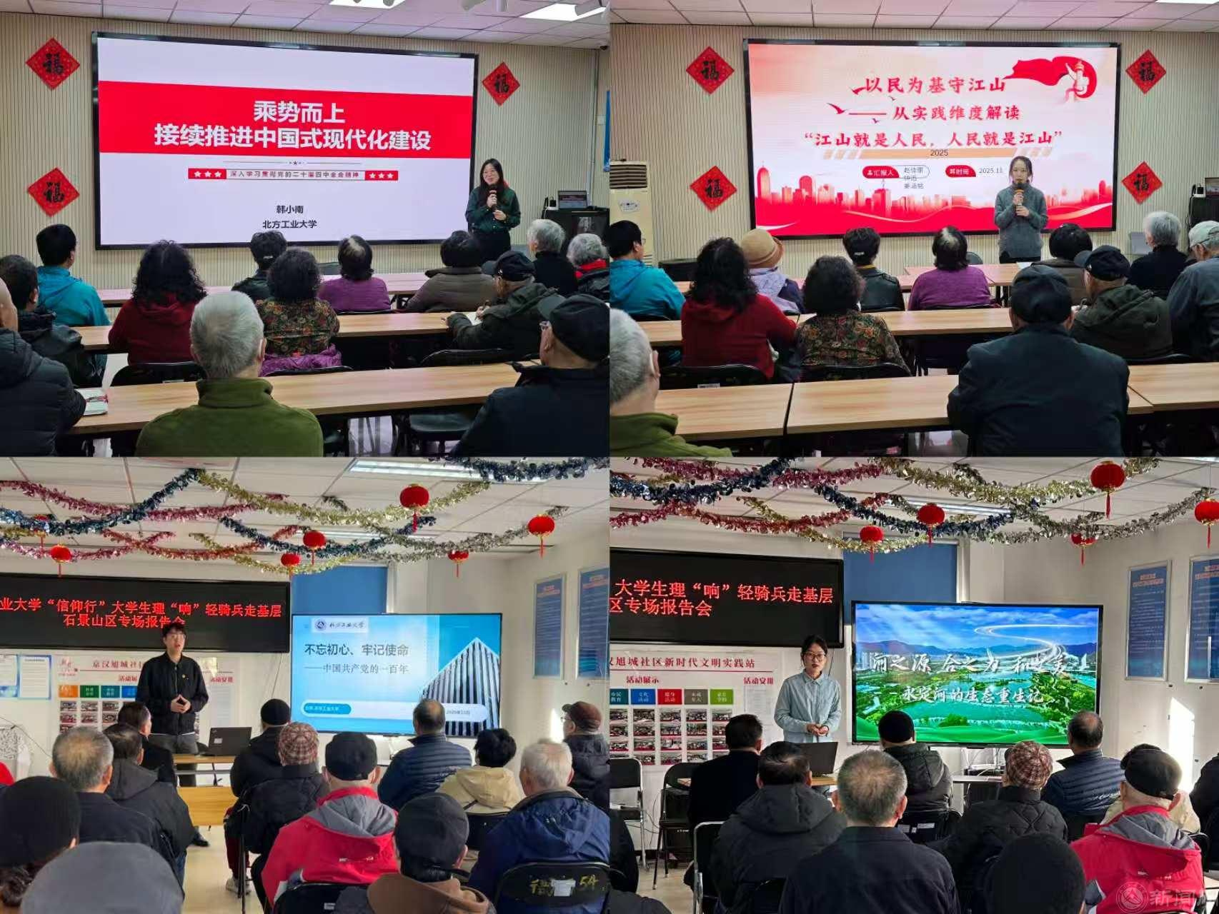 在石景山区,宣讲团师生们紧紧围绕党的二十届四中全会精神、习近平文化思想等主题,用通俗易懂的语言,对“十五五”规划建议的核心要义进行系统解读;深挖区域红色基因与文化资源,探索红色文化与基层治理融合路径,展现“两个结合”的实践成果与文化传承的鲜活案例。