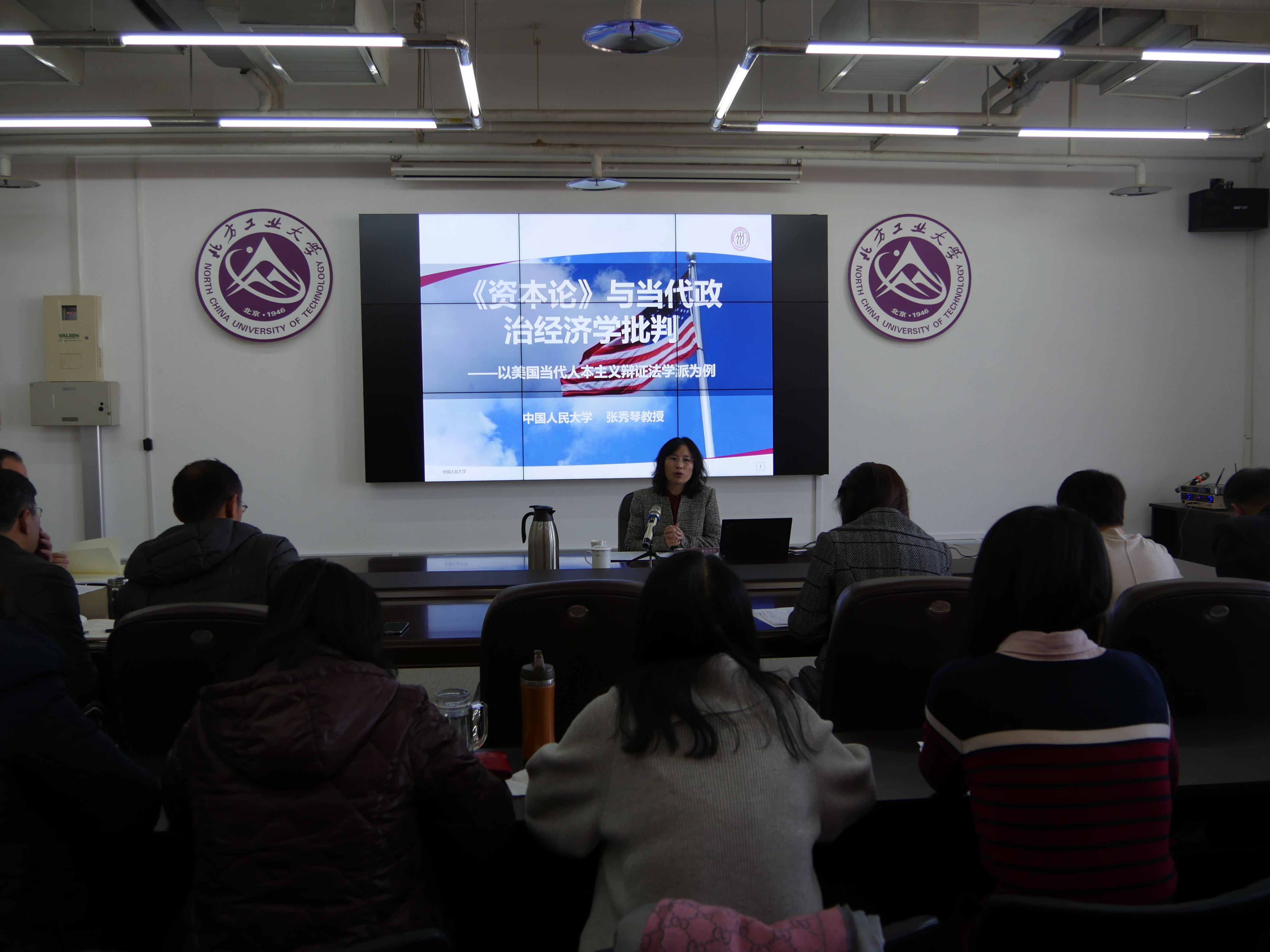 11月22日,中国人民大学谈球吧官方网站张秀琴教授应邀为公司谈球吧官方网站师生作了题为“《资本论》与当代政治经济学批判——以美国当代人本主义辩证法学派为例”的学术讲座,讲座由谈球吧官方网站经理张加才教授主持,谈球吧官方网站教师和研究生共同参加了本次讲座。