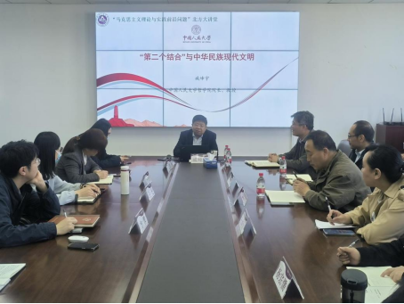 2024年4月15日下午,由谈球吧官方网站主办的“马克思主义理论与实践前沿问题”北方大讲堂系列活动在瀚学楼1208会议室举行,中国人民大学哲公司经理、教授、博士生导师臧峰宇应邀为公司师生作了题为“‘第二个结合’与中华民族现代文明”的学术讲座。讲座由公司党委书记张茂林主持,公司全体师生参加了本次讲座。