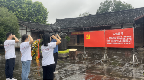细雨绵绵、哀思殷殷,实践团同纪念馆工作人员面向罗瑞卿半身铜像默哀并三鞠躬。随后,全体党员面向党旗,重温入党誓词,进一步坚定理想信念。纪念馆馆长雷军表示,“罗瑞卿纪念馆一直以来积极与各地高校达成共建合作关系,让思政课的理论教育、精神塑造和价值引领与老一辈无产阶级革命家们高贵的品质相融合。基地共建的目的在于将红色资源与为党育人、为国育才更好地结合起来,不断弘扬革命精神,教育引导员工在传承红色基因中坚定报国信念、在赓续红色血脉中汲取创新力量。”